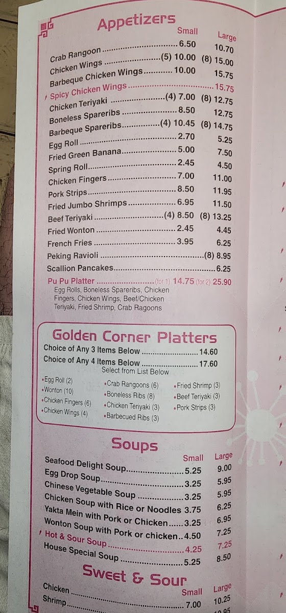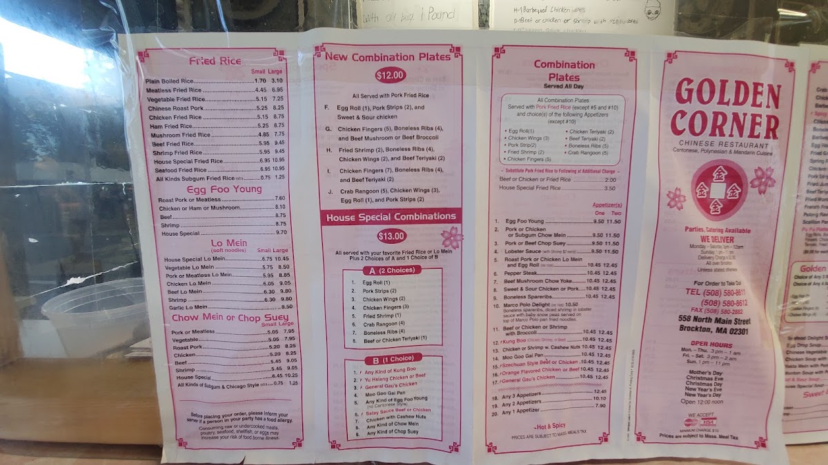 Welcome to Golden Corner, a hidden gem located at 558 N Main St, Brockton, MA. This cozy spot offers a diverse menu that ranges from appetizers like Crab Rangoon and Boneless Spareribs to delectable chicken dishes, including Szechuan Spicy White Chicken and General Gau's Chicken. Each dish is crafted with care, promising fresh ingredients and authentic flavors.